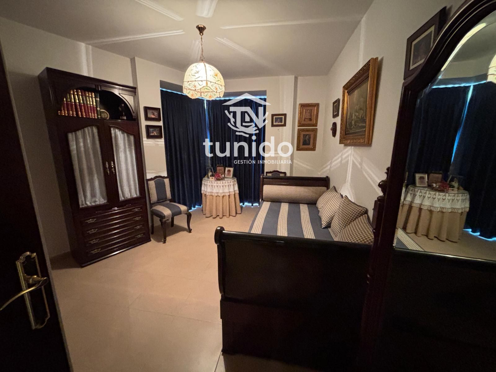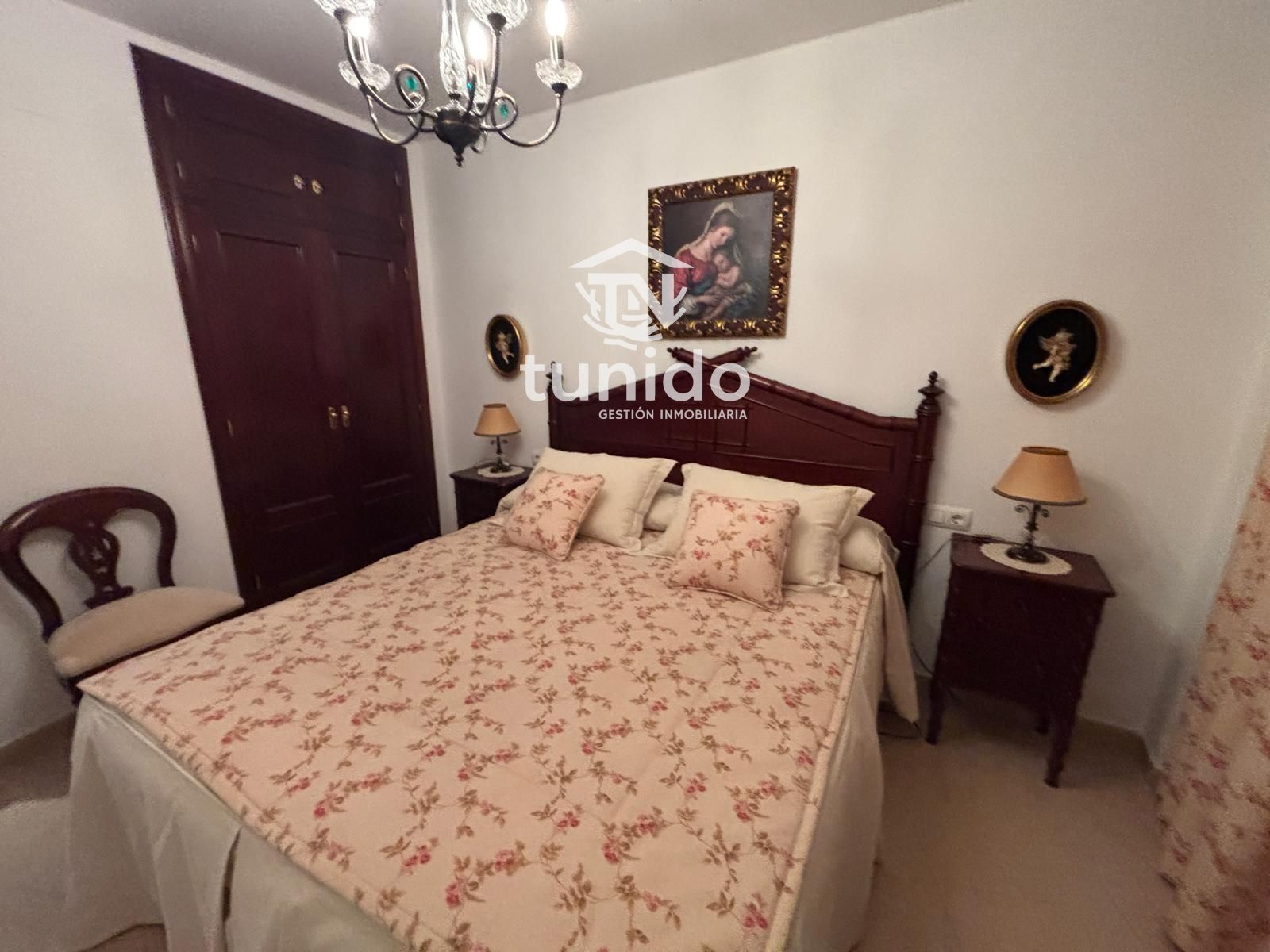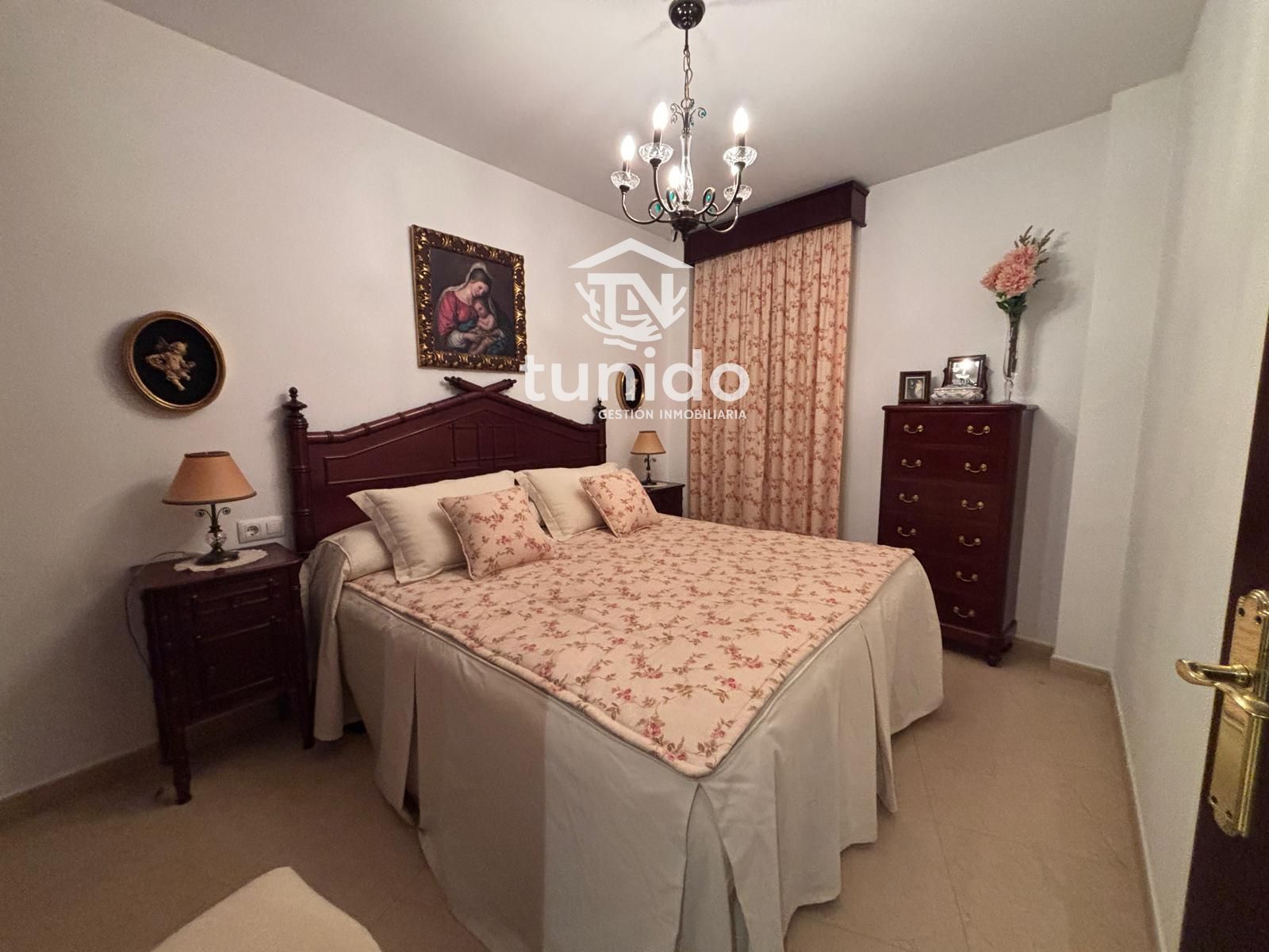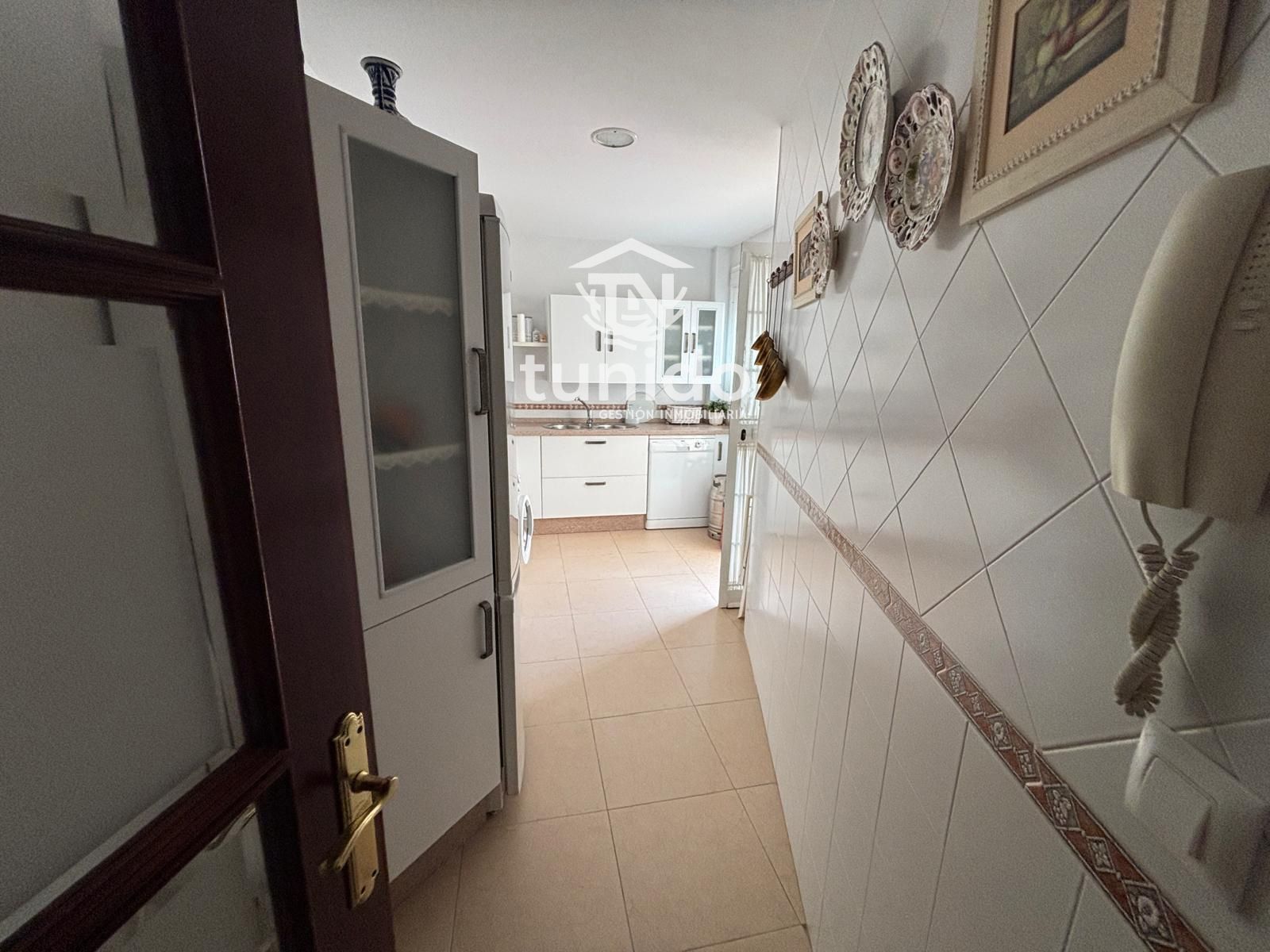 Tres dormitorios, destacando el principal con armario empotrado, un baño completo y prácticos espacios de almacenamiento en el pasillo.